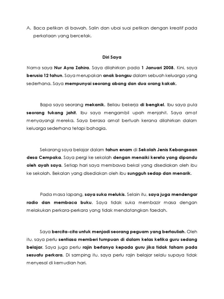 Tulis karangan jenis cerita yang bertajuk Diri Saya. Aku fikir pengajar adalah salah satu pekerjenaan yang mulia guru adalah lebih dari. Saya anak ketiga daripada empat orang adik beradik.